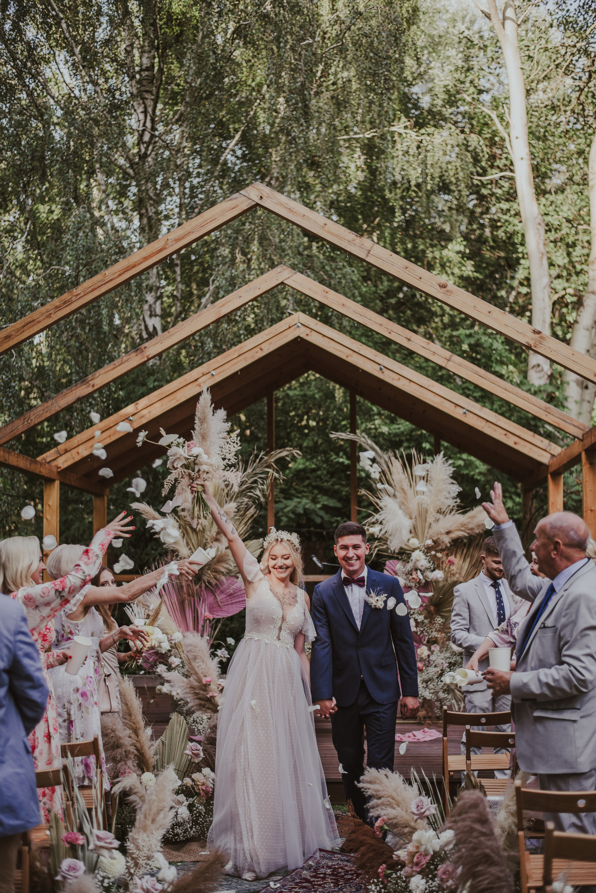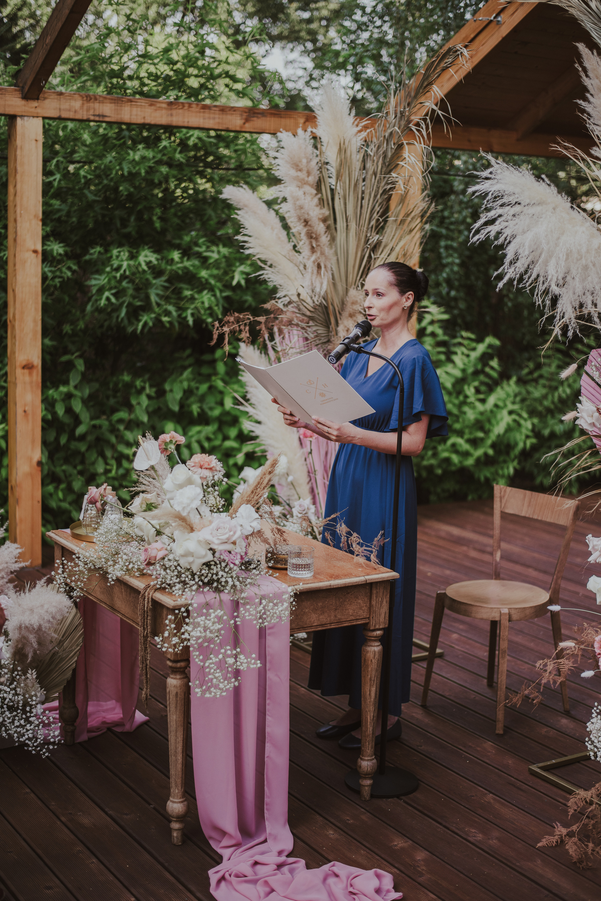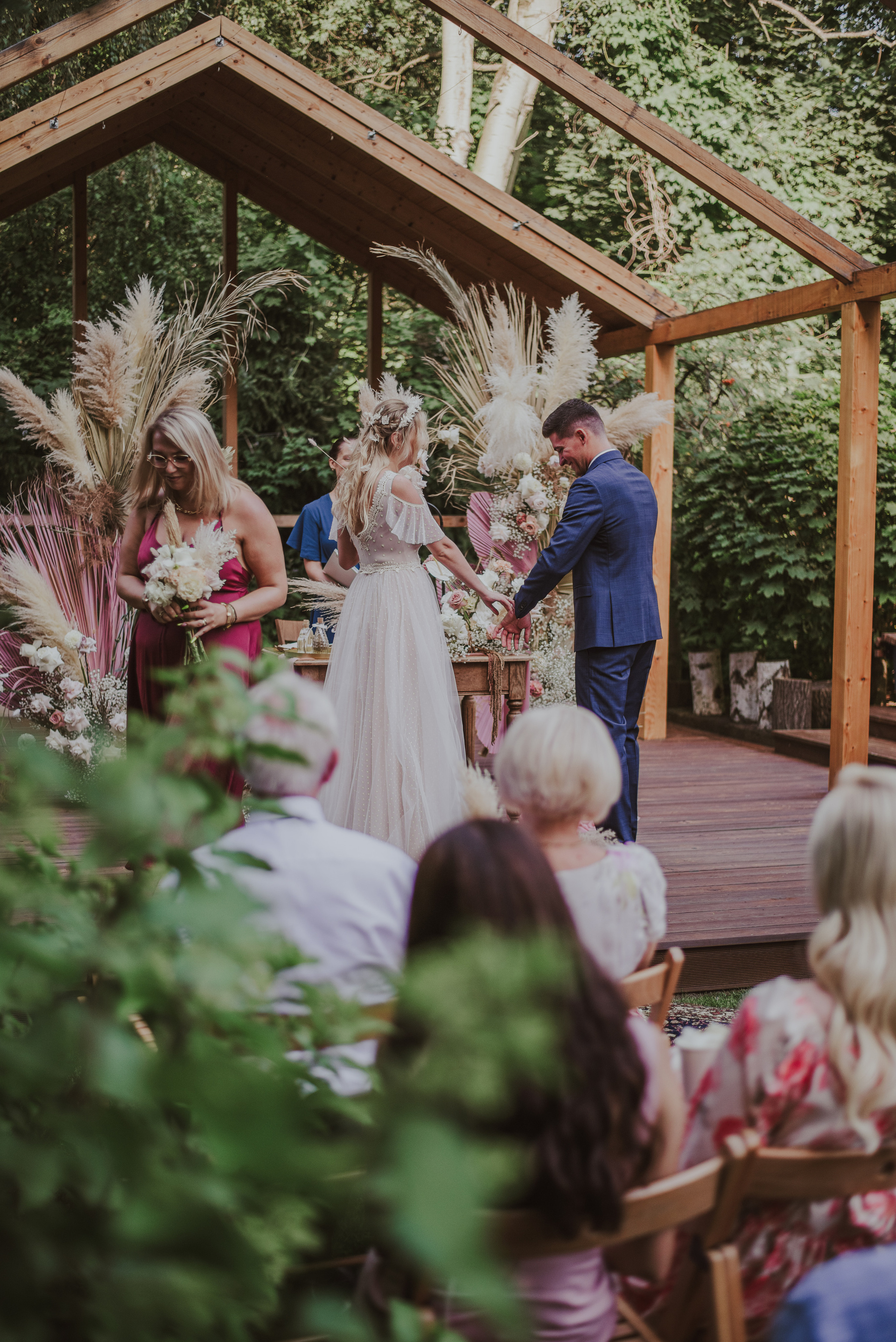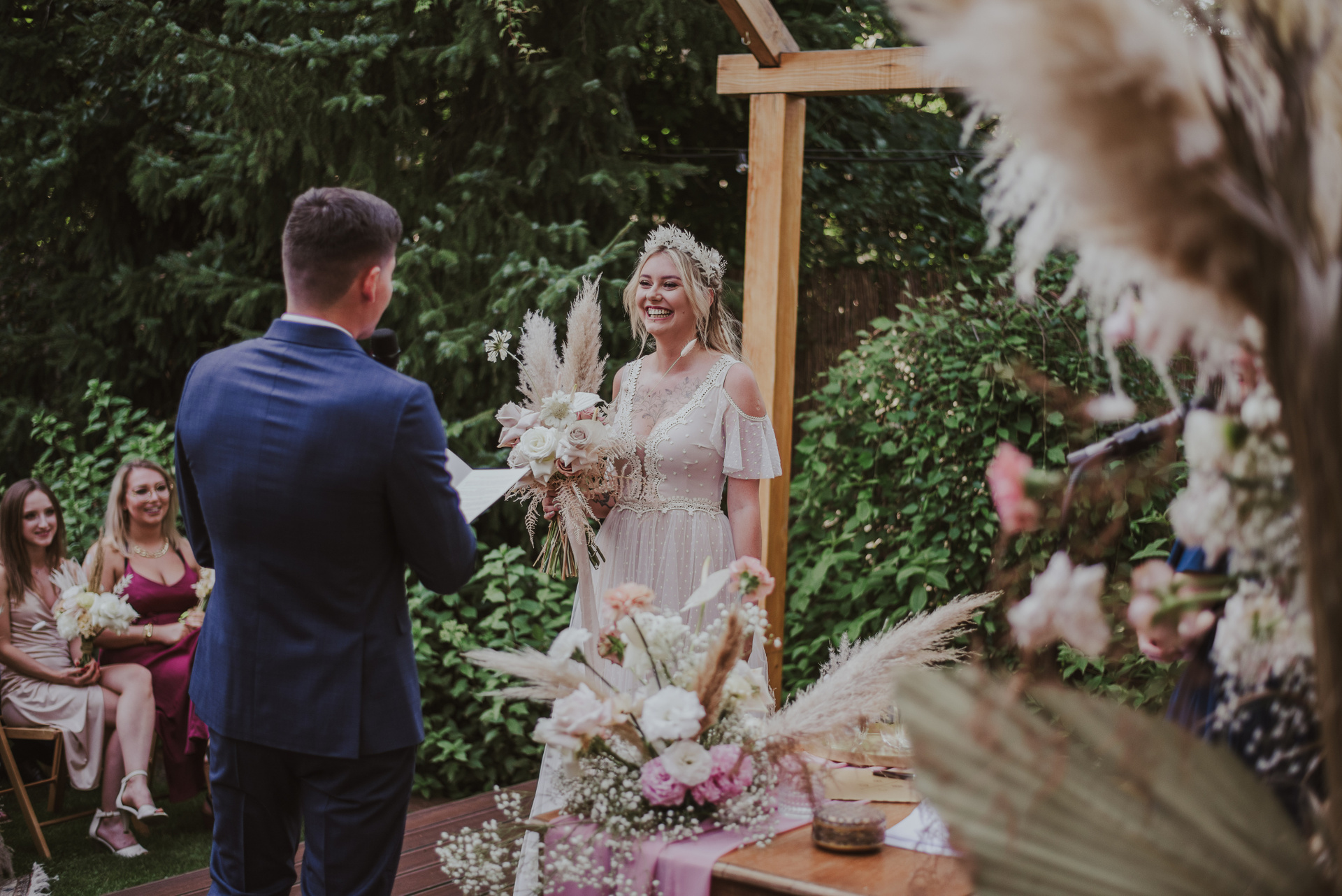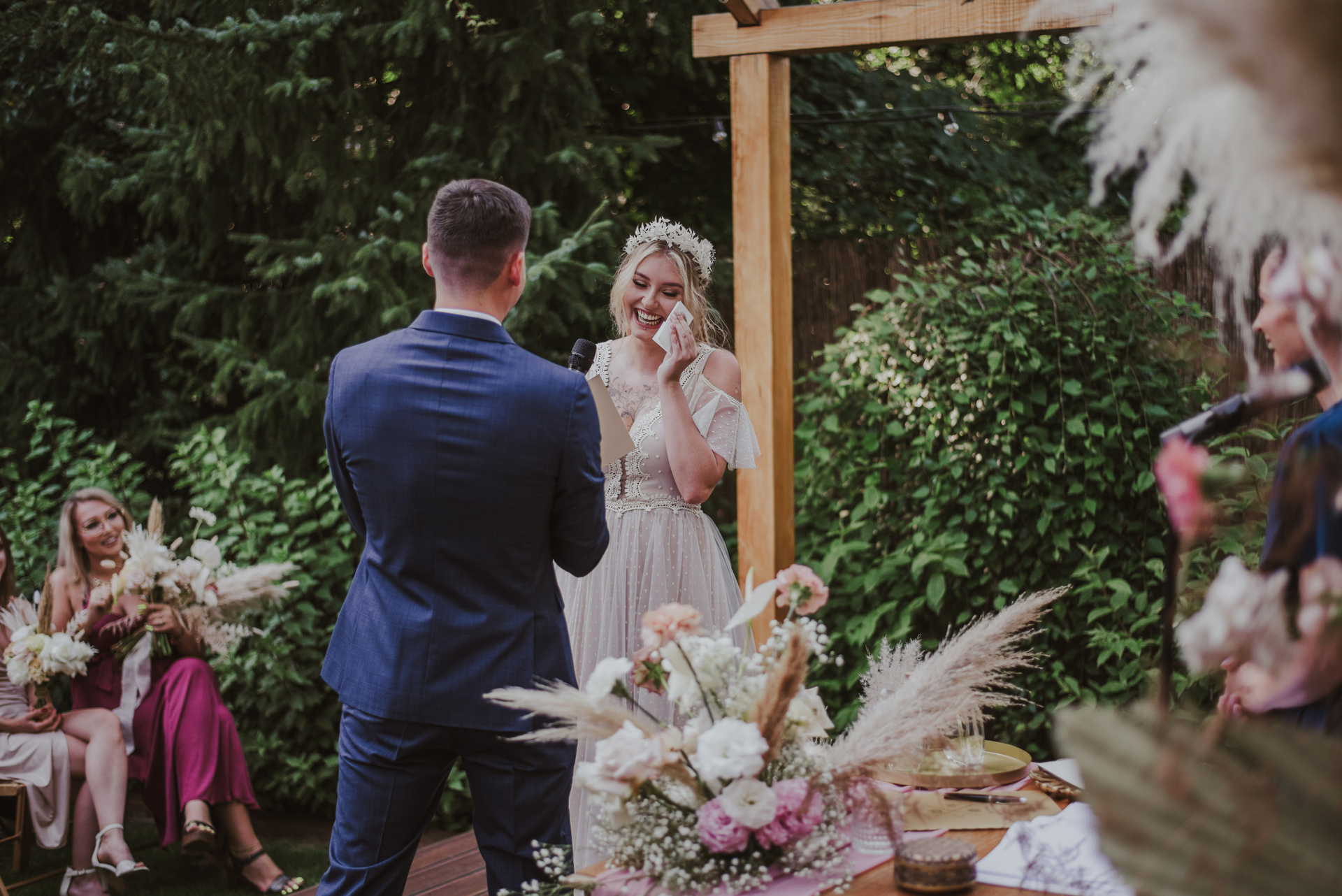 Najpiękniejszy ślub na jakim byłam. Pełen pampasów, gipsówki i róż plenerowy ślub Oli i Daniela.
