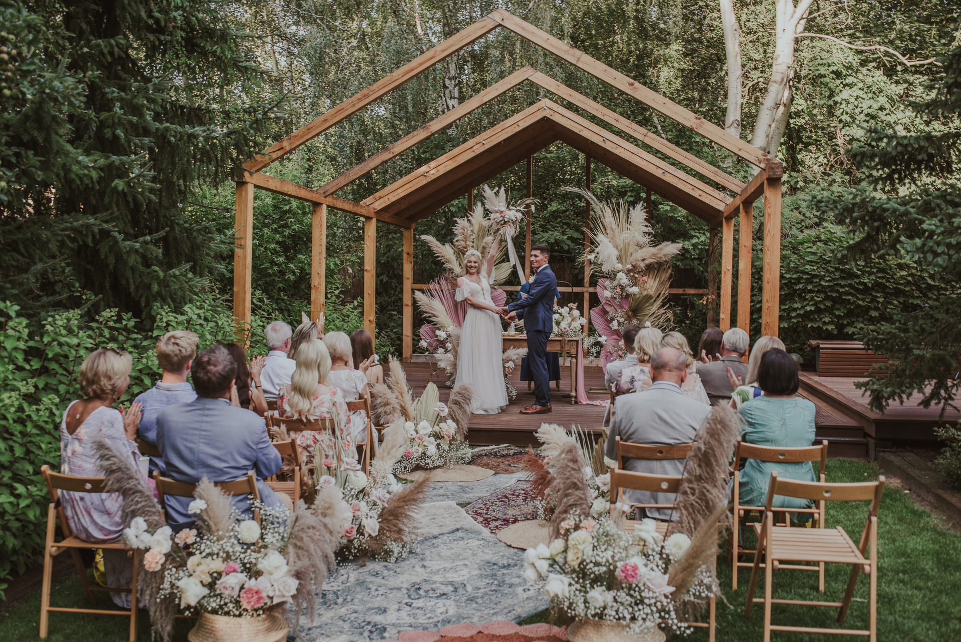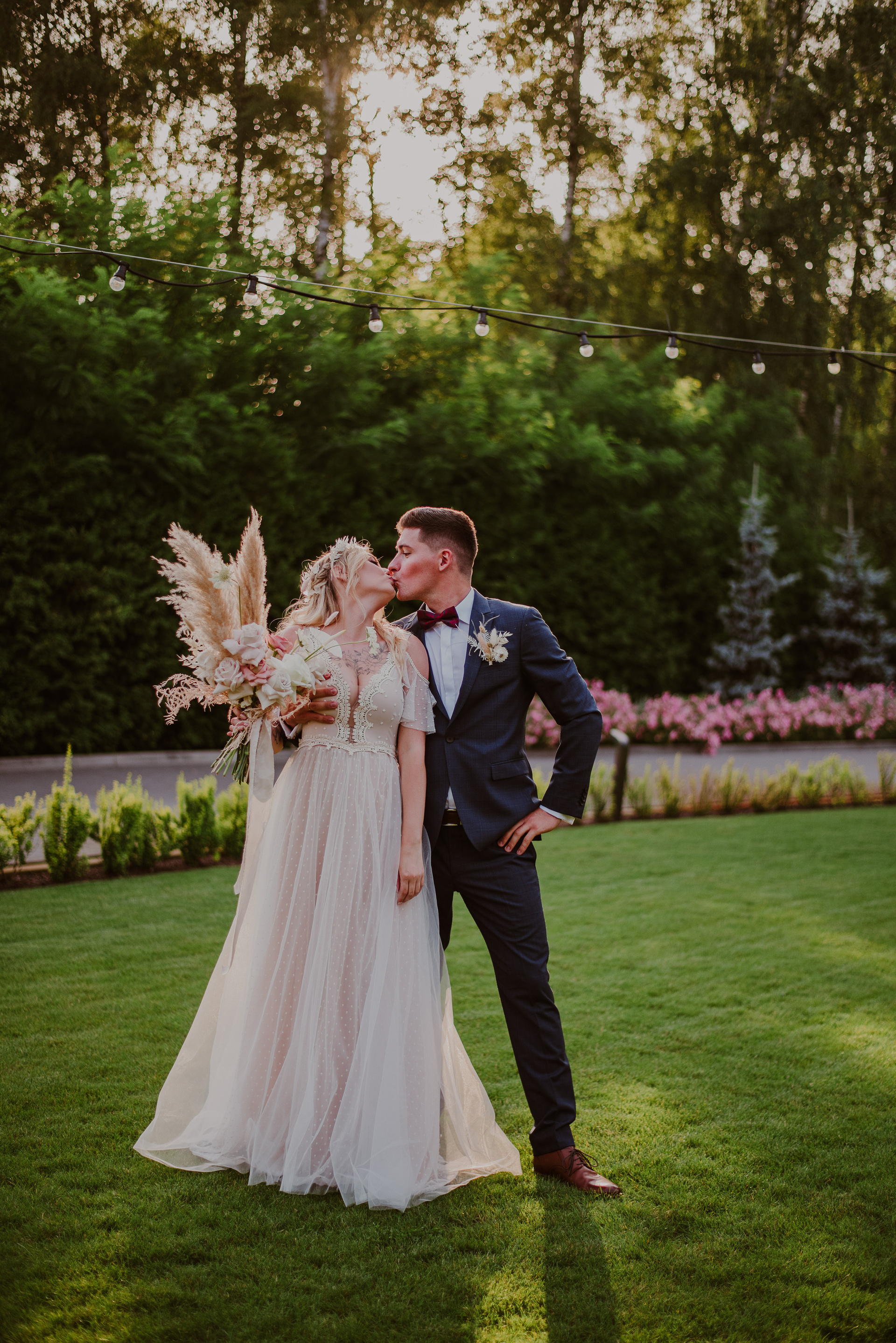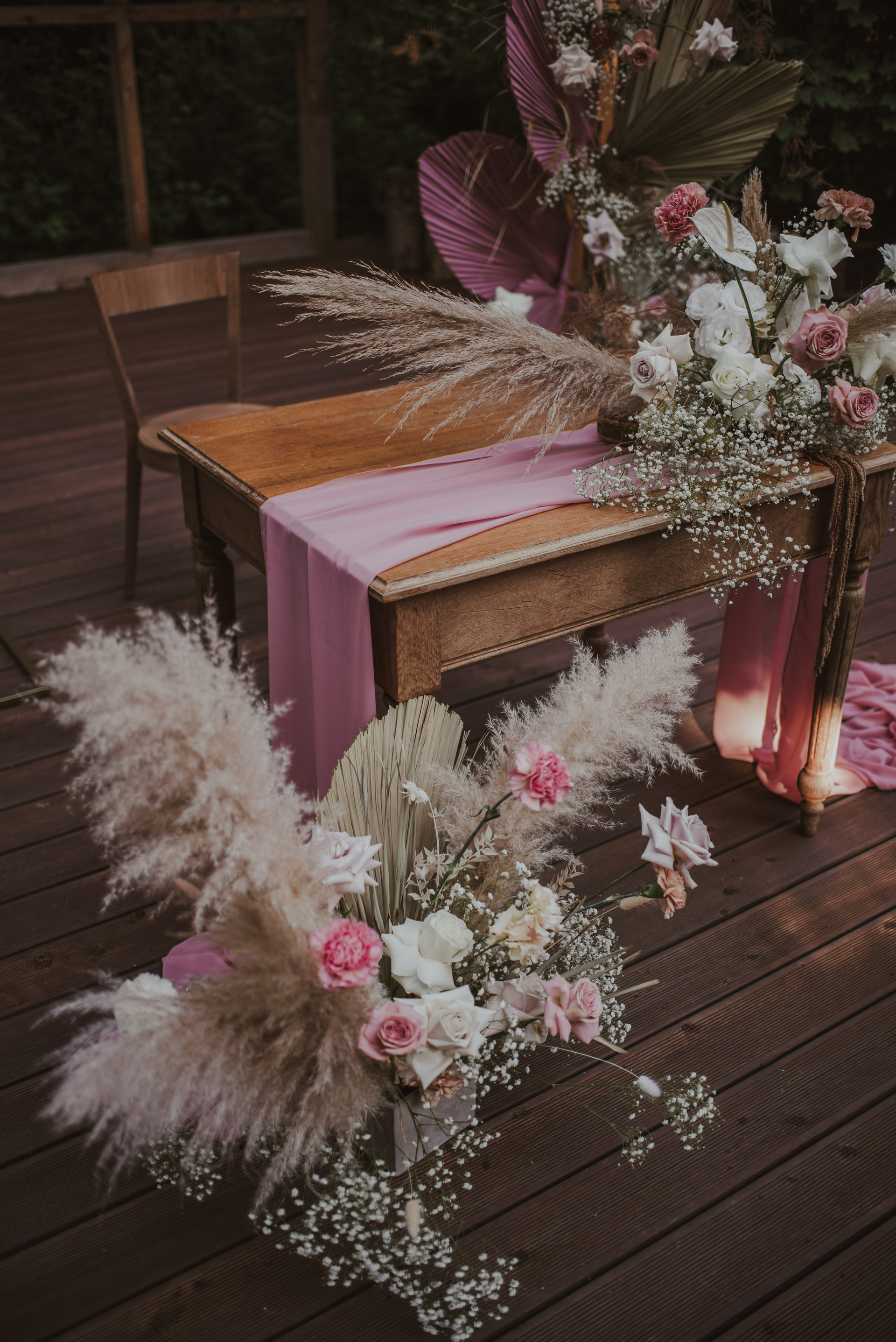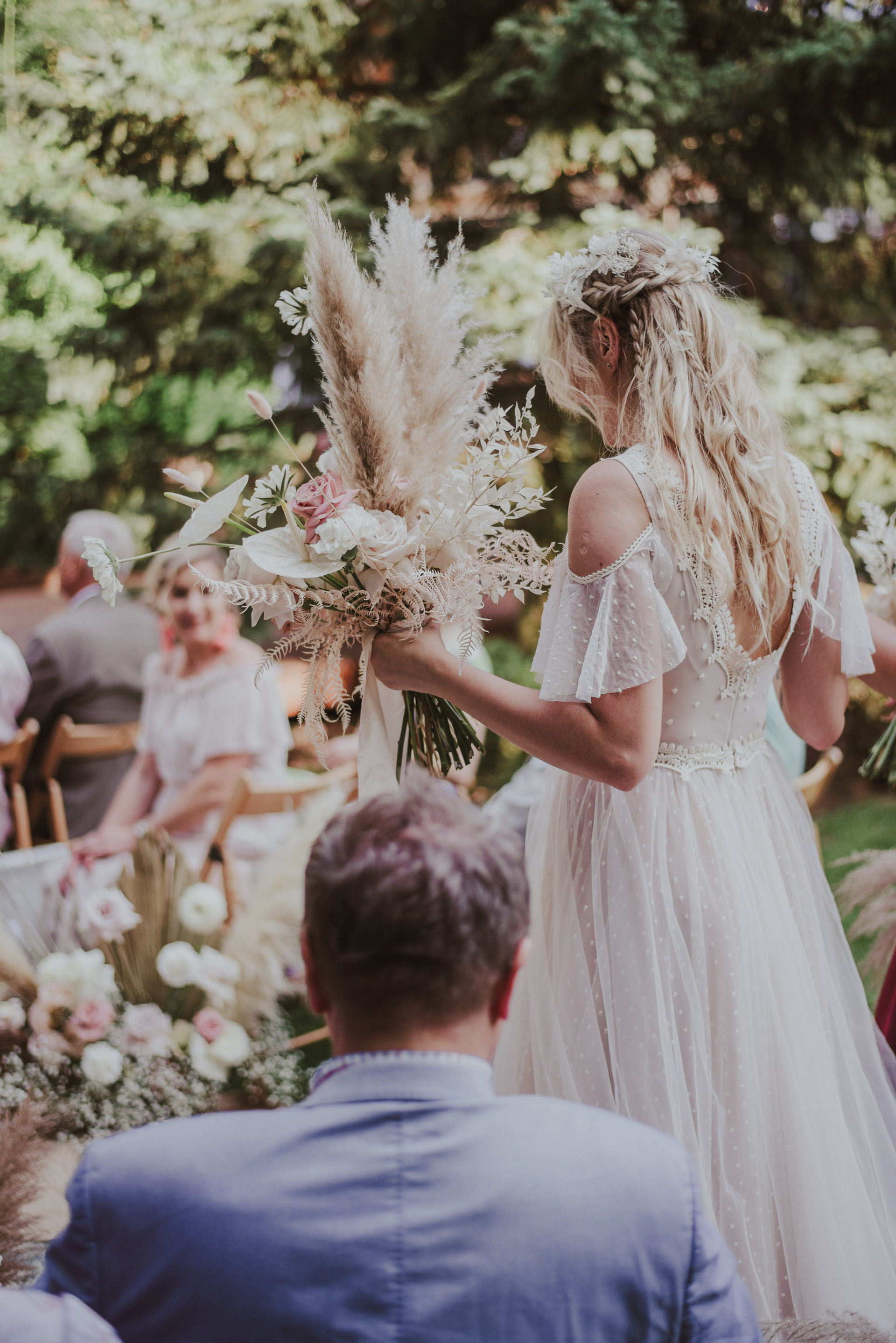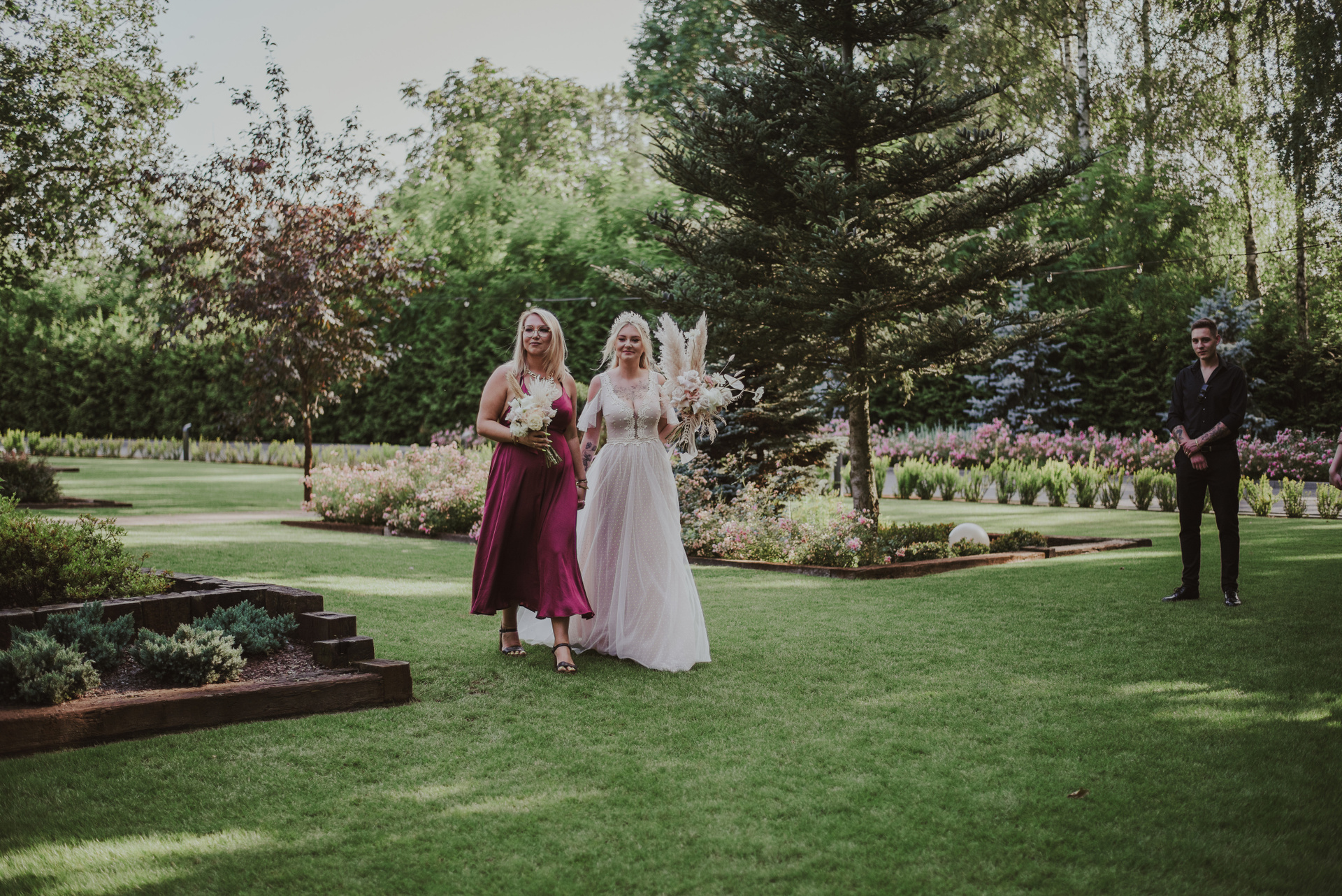 Najpiękniejszy ślub na jakim byłam. Pełen pampasów, gipsówki i róż plenerowy ślub Oli i Daniela.