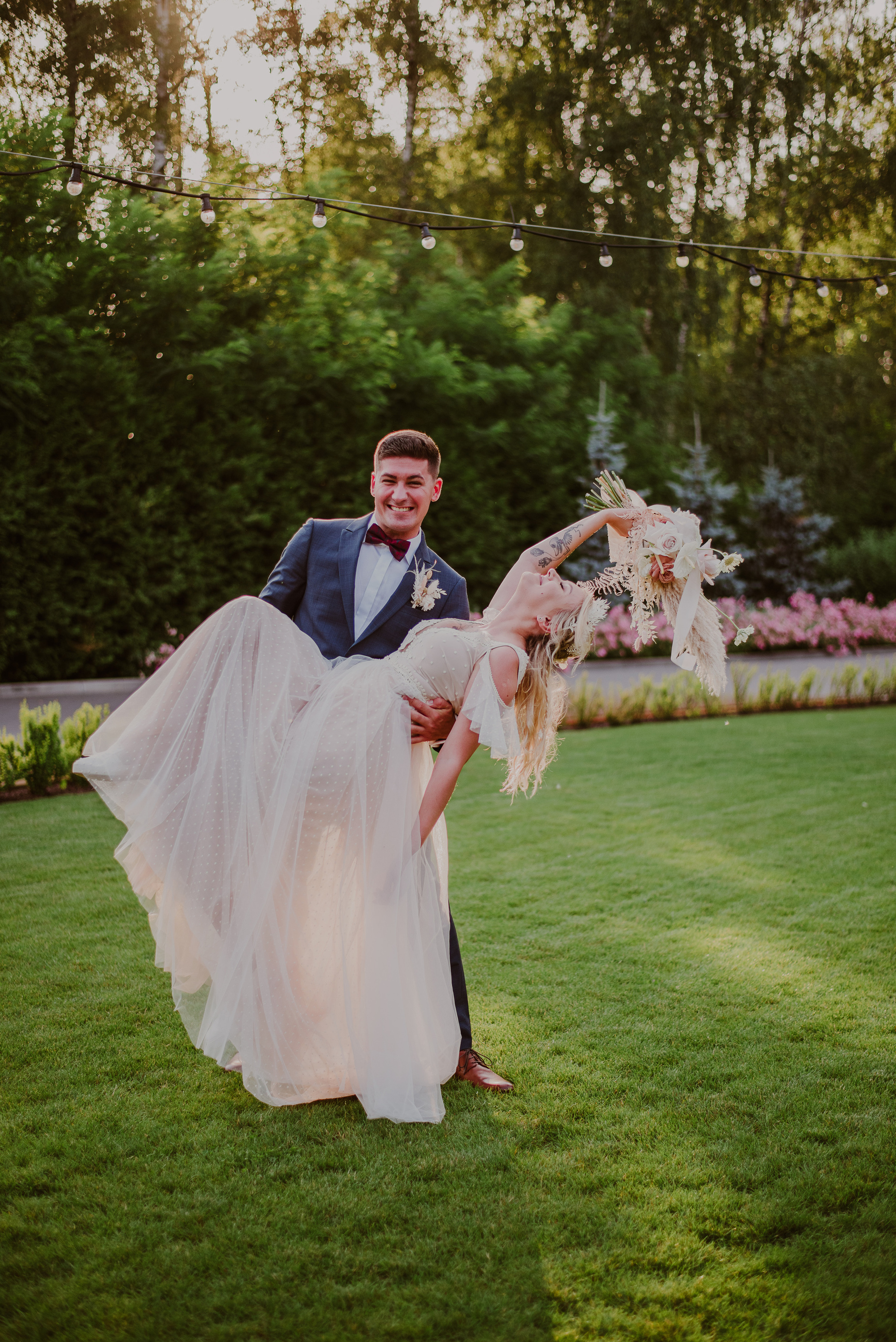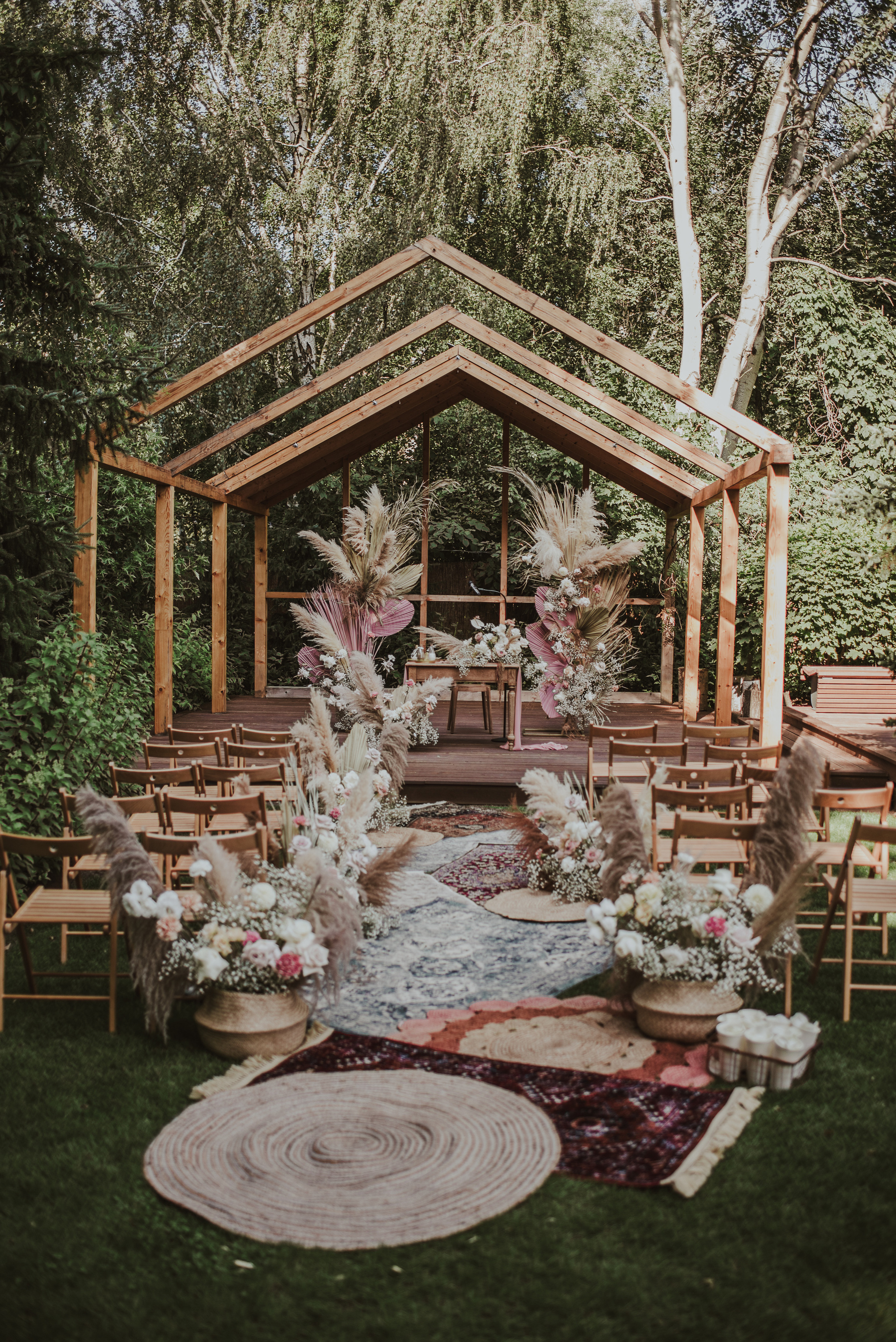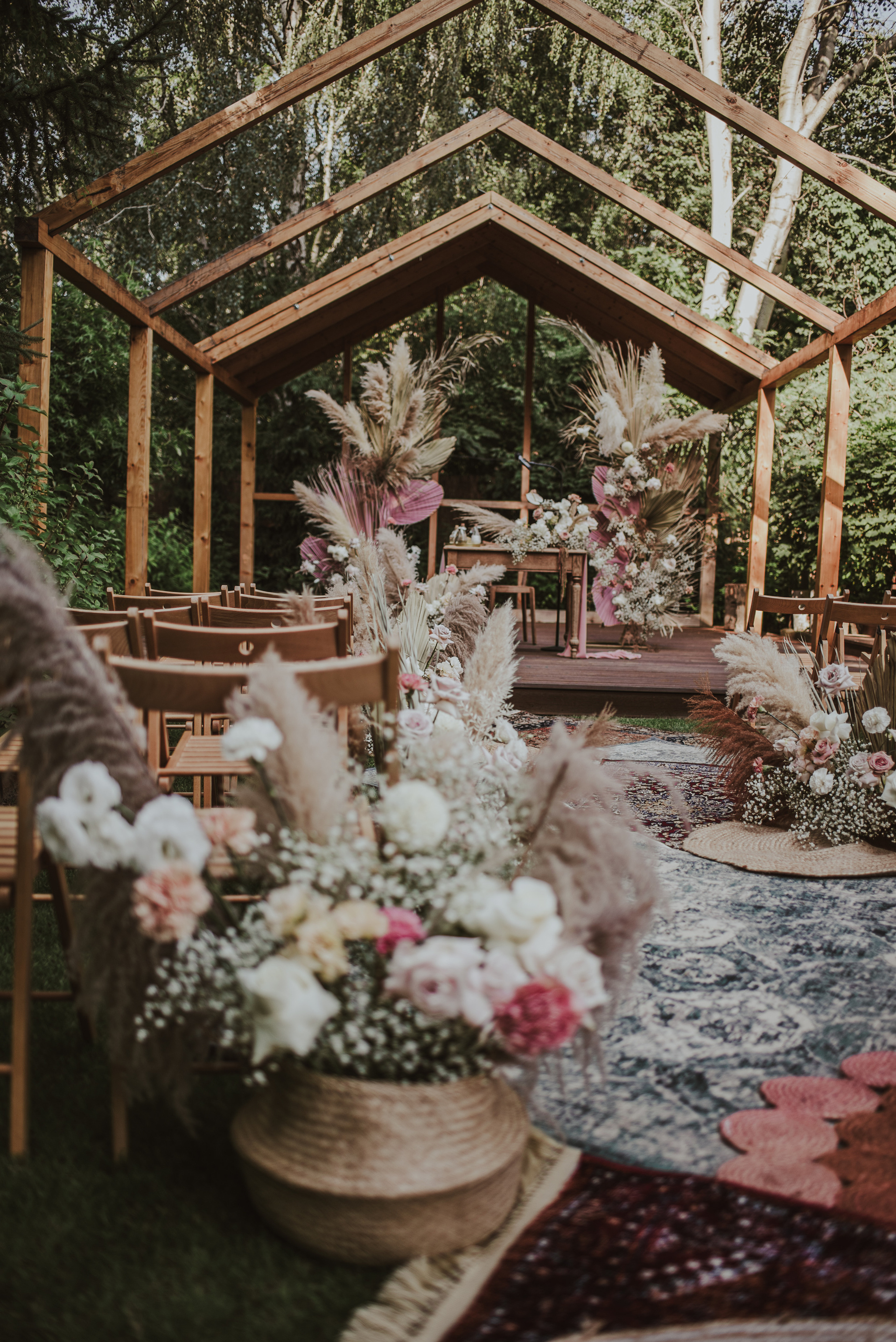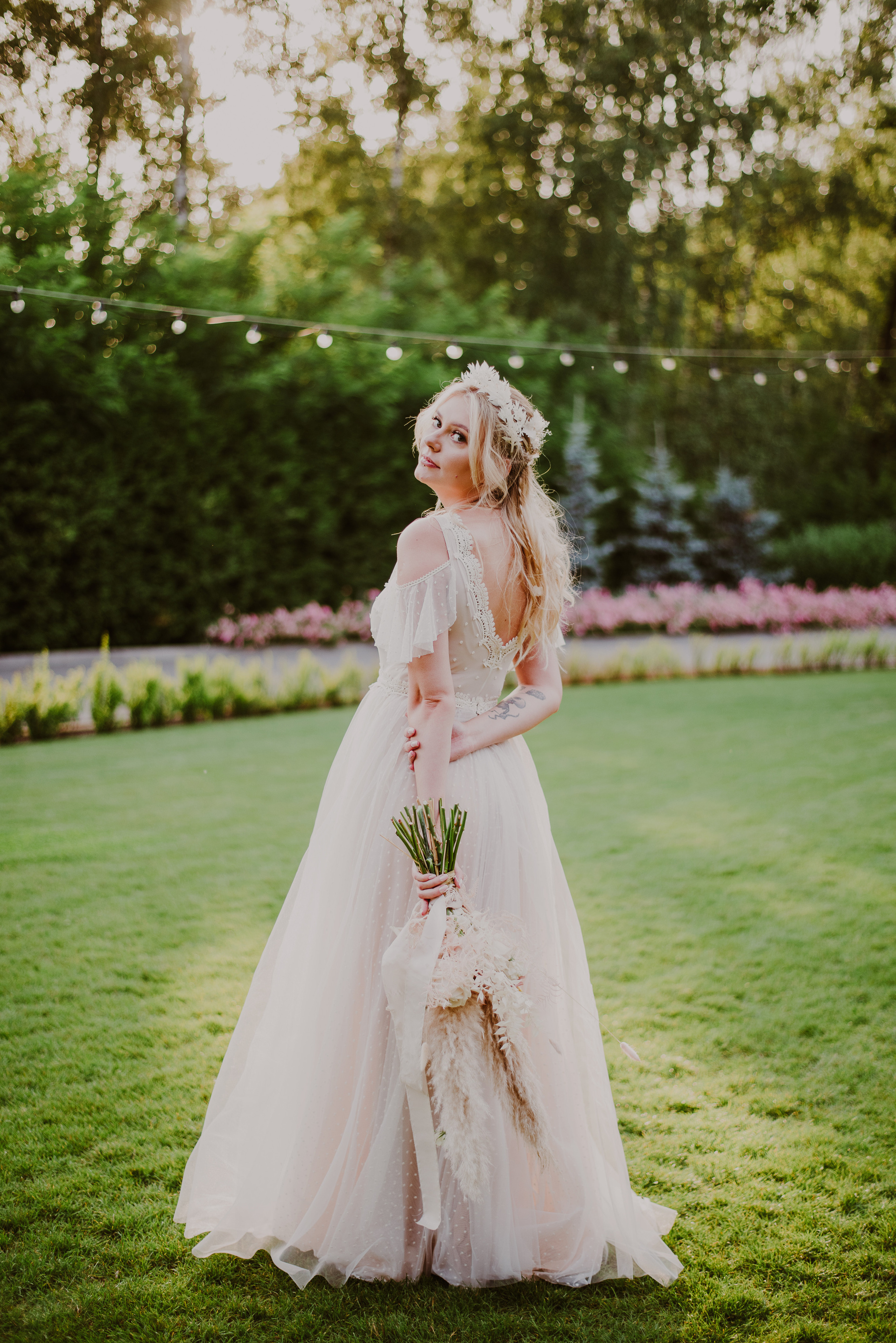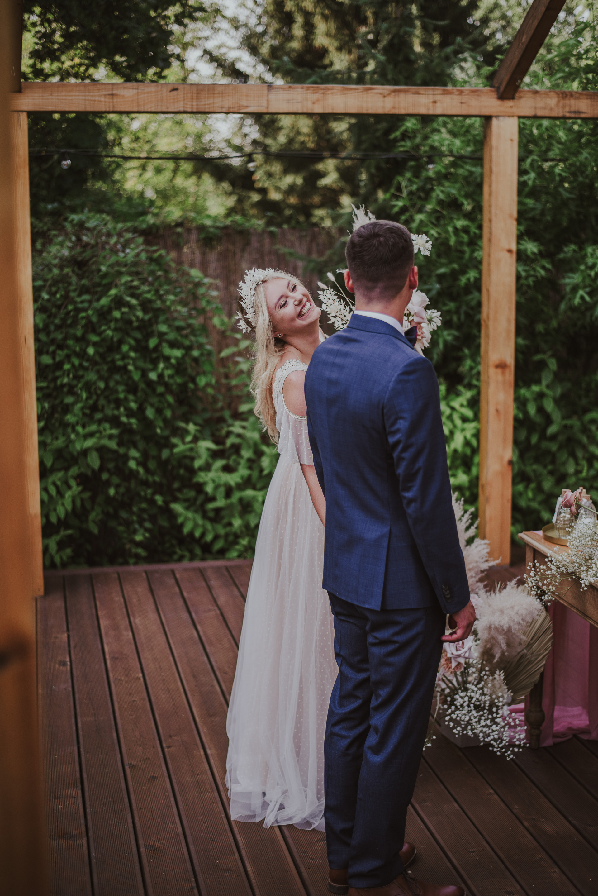 Najpiękniejszy ślub na jakim byłam. Pełen pampasów, gipsówki i róż plenerowy ślub Oli i Daniela.