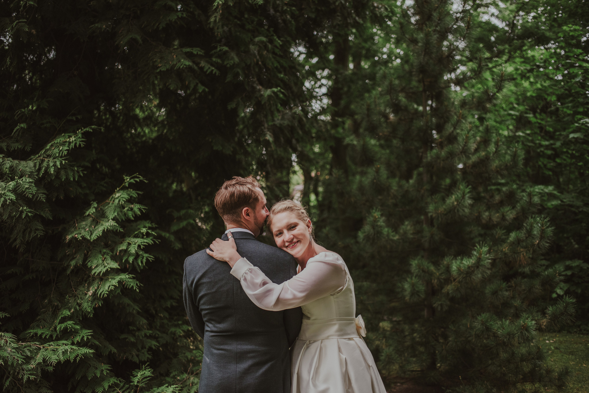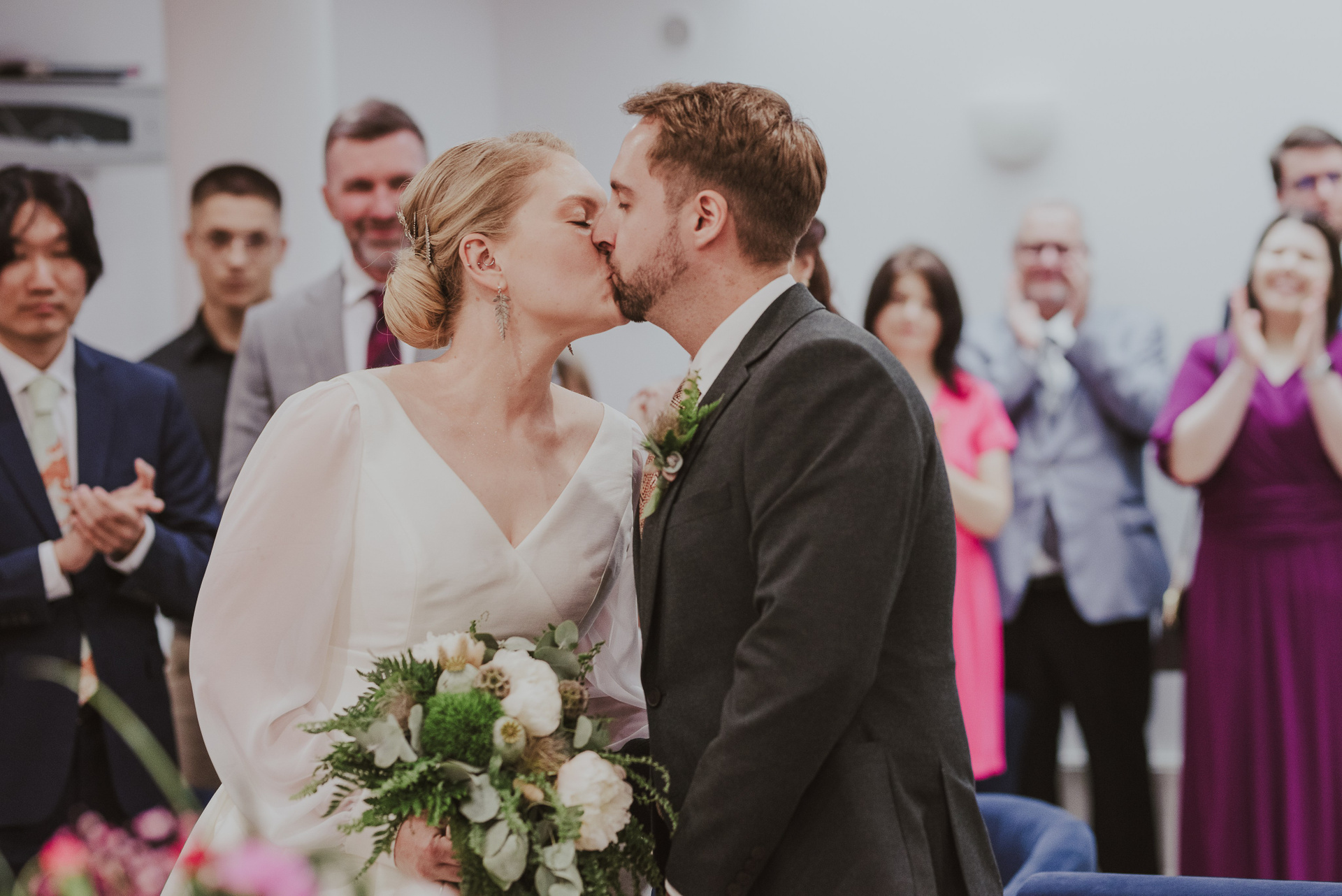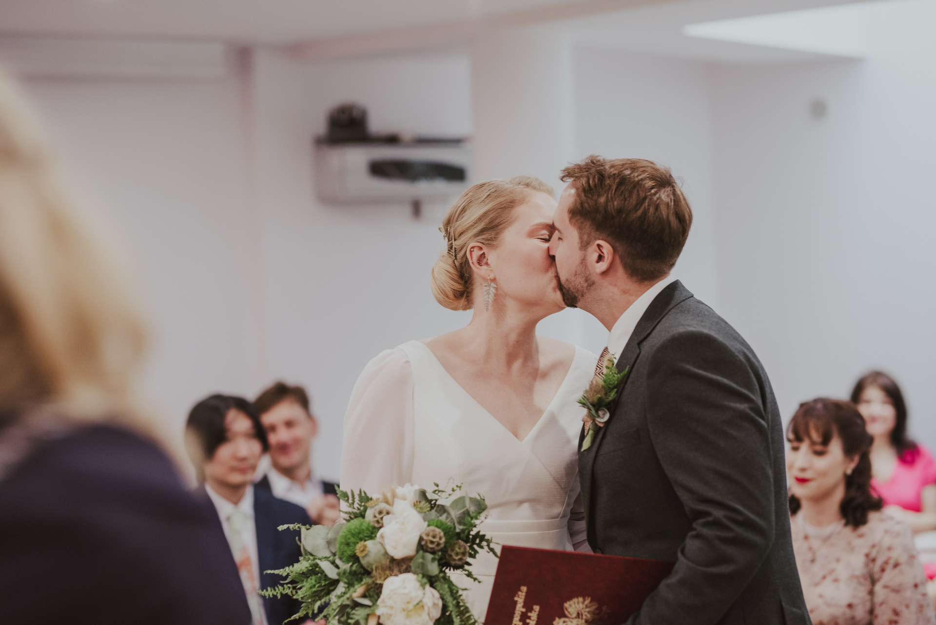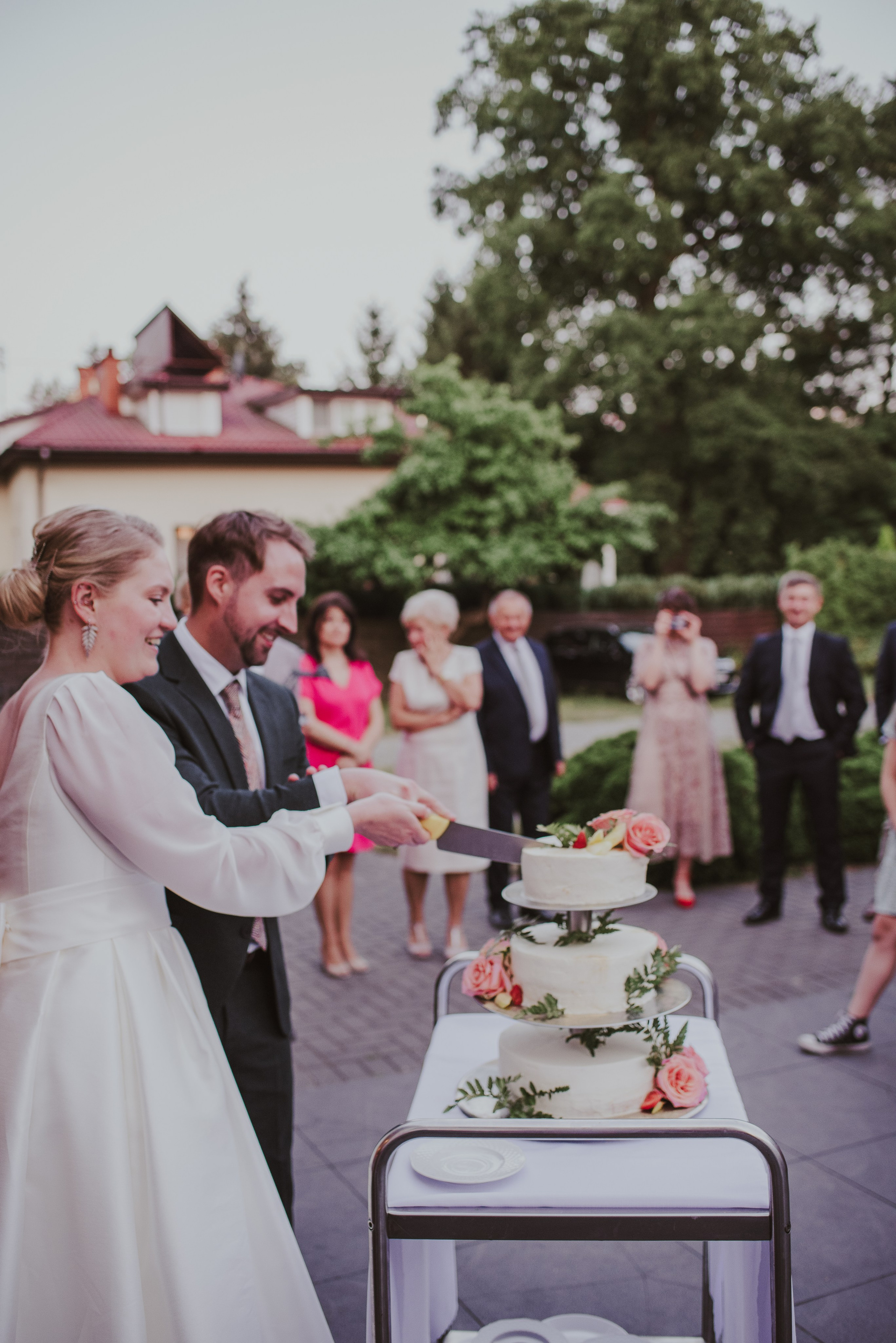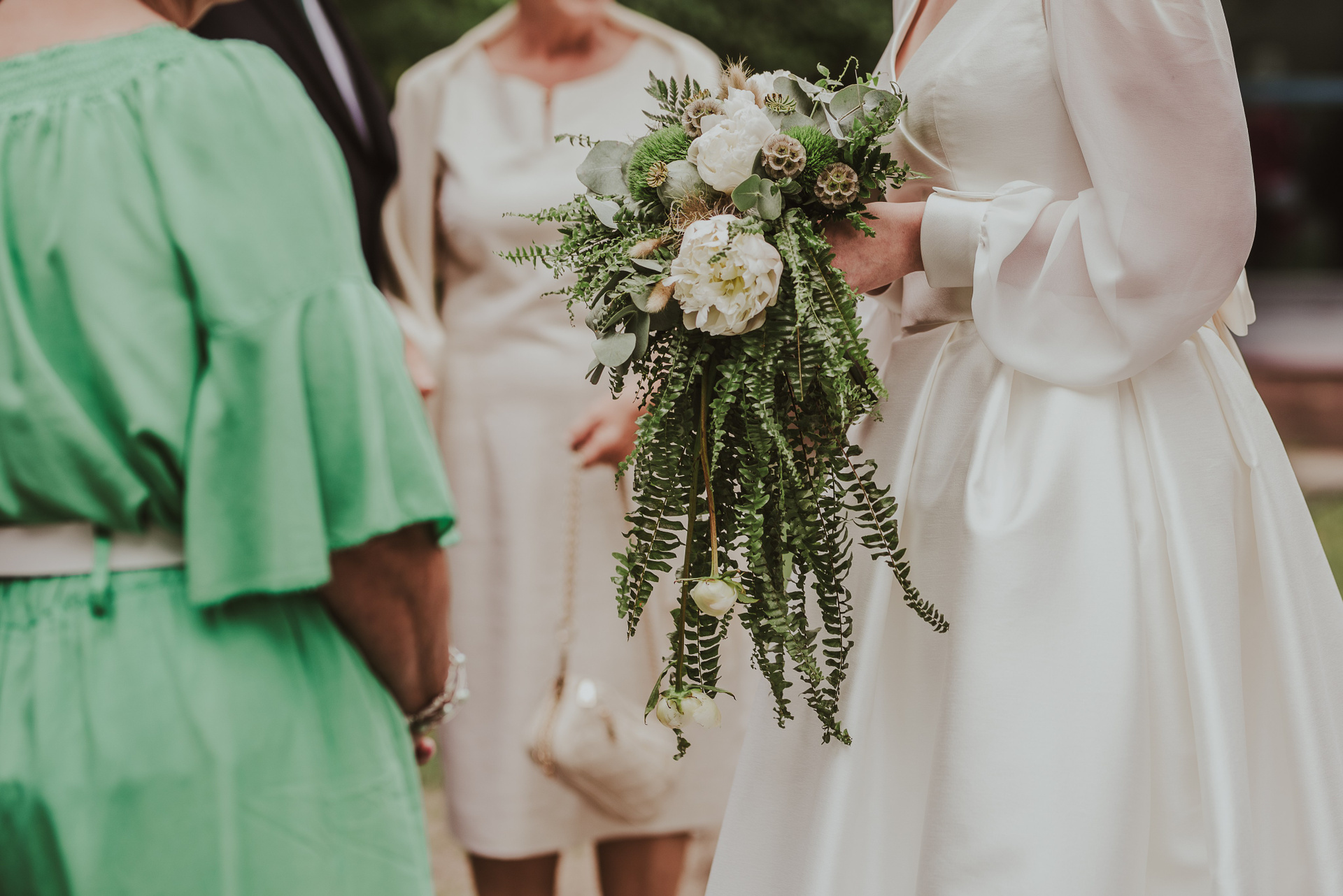 To była krótka uroczystość, 2023 rok opiewał głównie w takie :) Młodych poznałam tuż przed urzędem, Suknia Zuzy była zachwycająca i uwaga! Miała kieszenie :) Tom również przystojnie się prezentował, zakochałam się w kolorze jego garnituru - jednak kwiaty w butonierce powodowały u niego alergię, chociaż ja wolałam myśleć, że jest taki wzruszony :) Wejściu młodym do urzędu towarzyszyła ciekawska sójka, która czekała i obserwowała nas na ławce. Sama urzędniczka przeprowadziła uroczystość w piękny i zabawny sposób, napisała nawet wiersz z okazji śluby tych dwojga:)