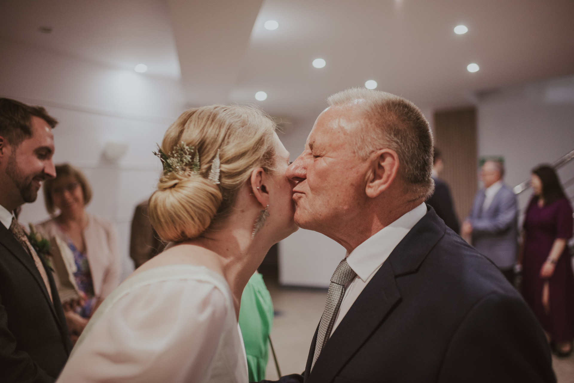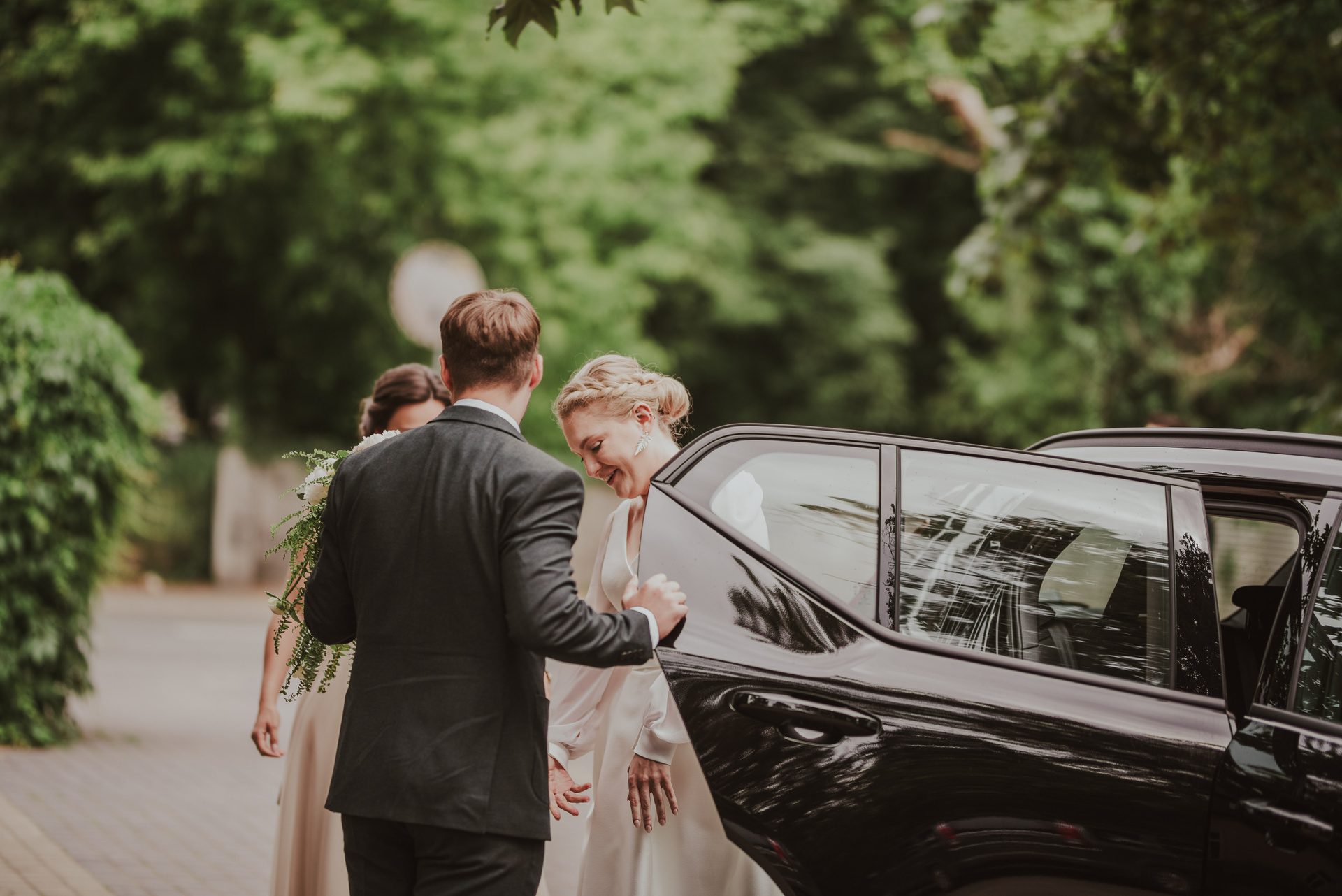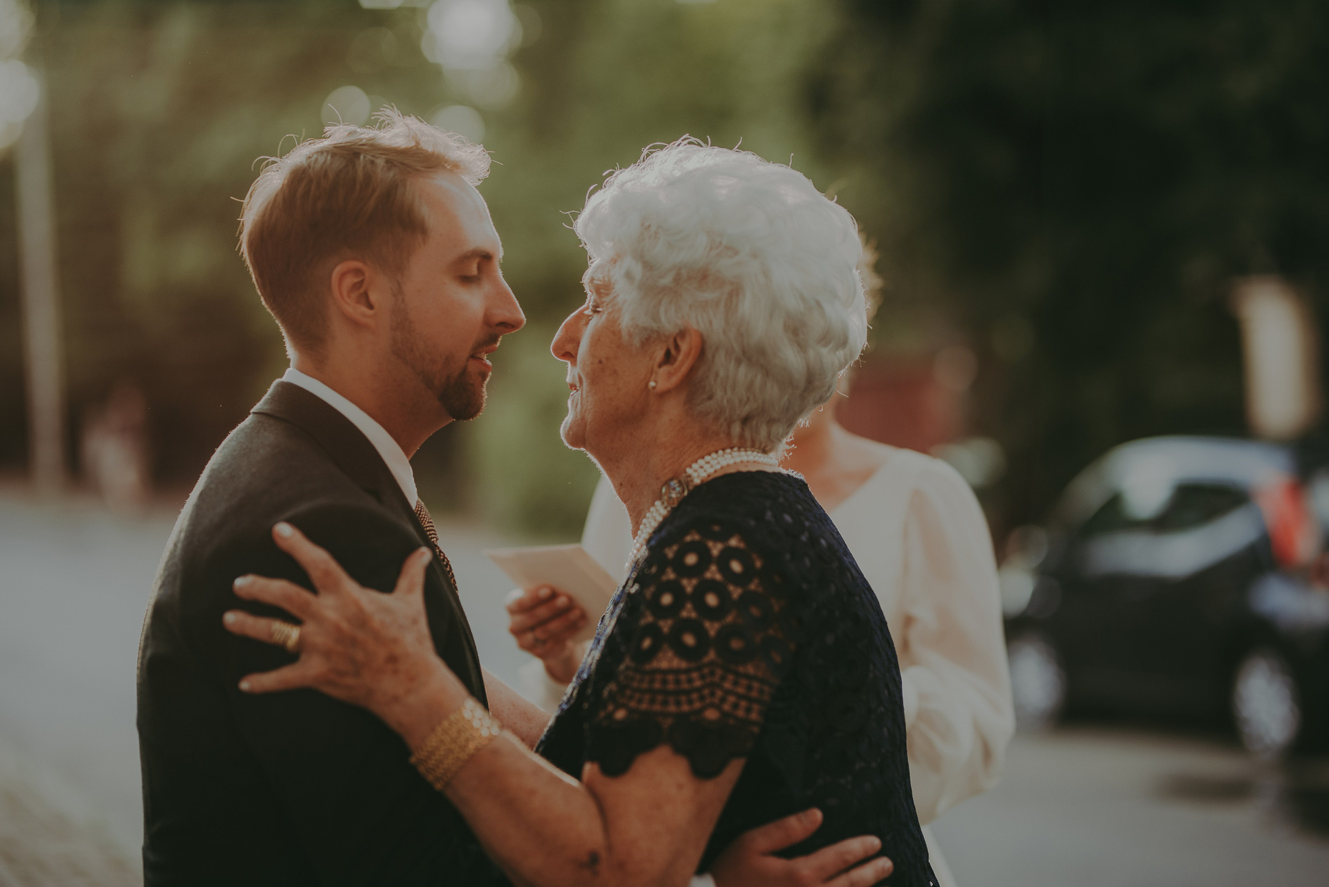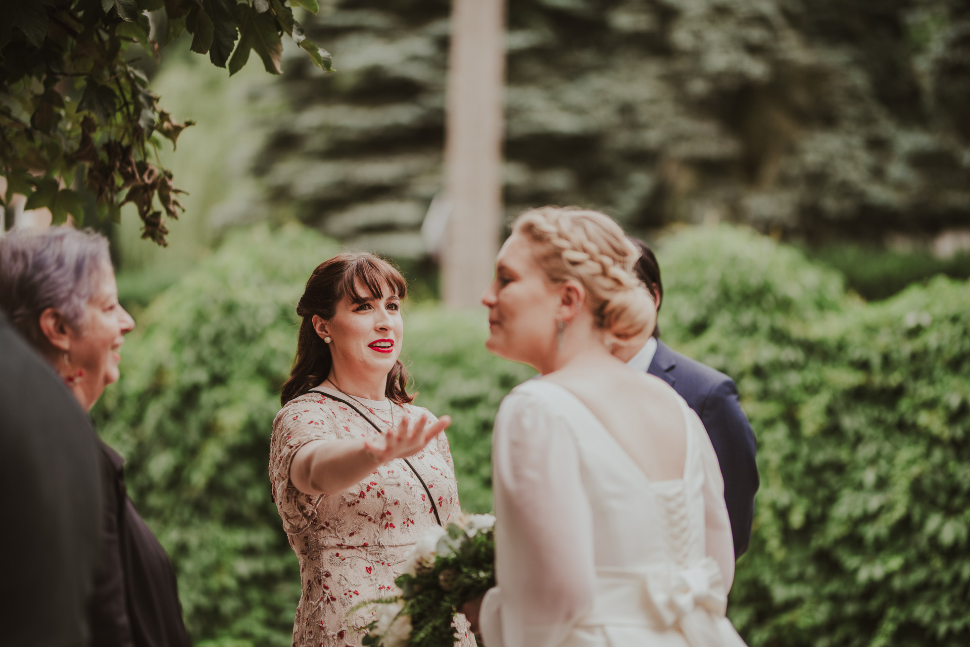 To była krótka uroczystość, 2023 rok opiewał głównie w takie :) Młodych poznałam tuż przed urzędem, Suknia Zuzy była zachwycająca i uwaga! Miała kieszenie :) Tom również przystojnie się prezentował, zakochałam się w kolorze jego garnituru - jednak kwiaty w butonierce powodowały u niego alergię, chociaż ja wolałam myśleć, że jest taki wzruszony :) Wejściu młodym do urzędu towarzyszyła ciekawska sójka, która czekała i obserwowała nas na ławce. Sama urzędniczka przeprowadziła uroczystość w piękny i zabawny sposób, napisała nawet wiersz z okazji śluby tych dwojga:)