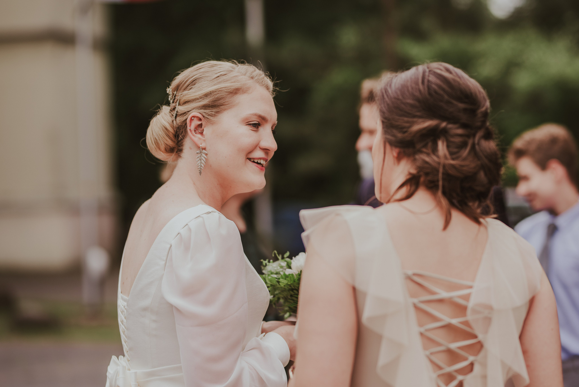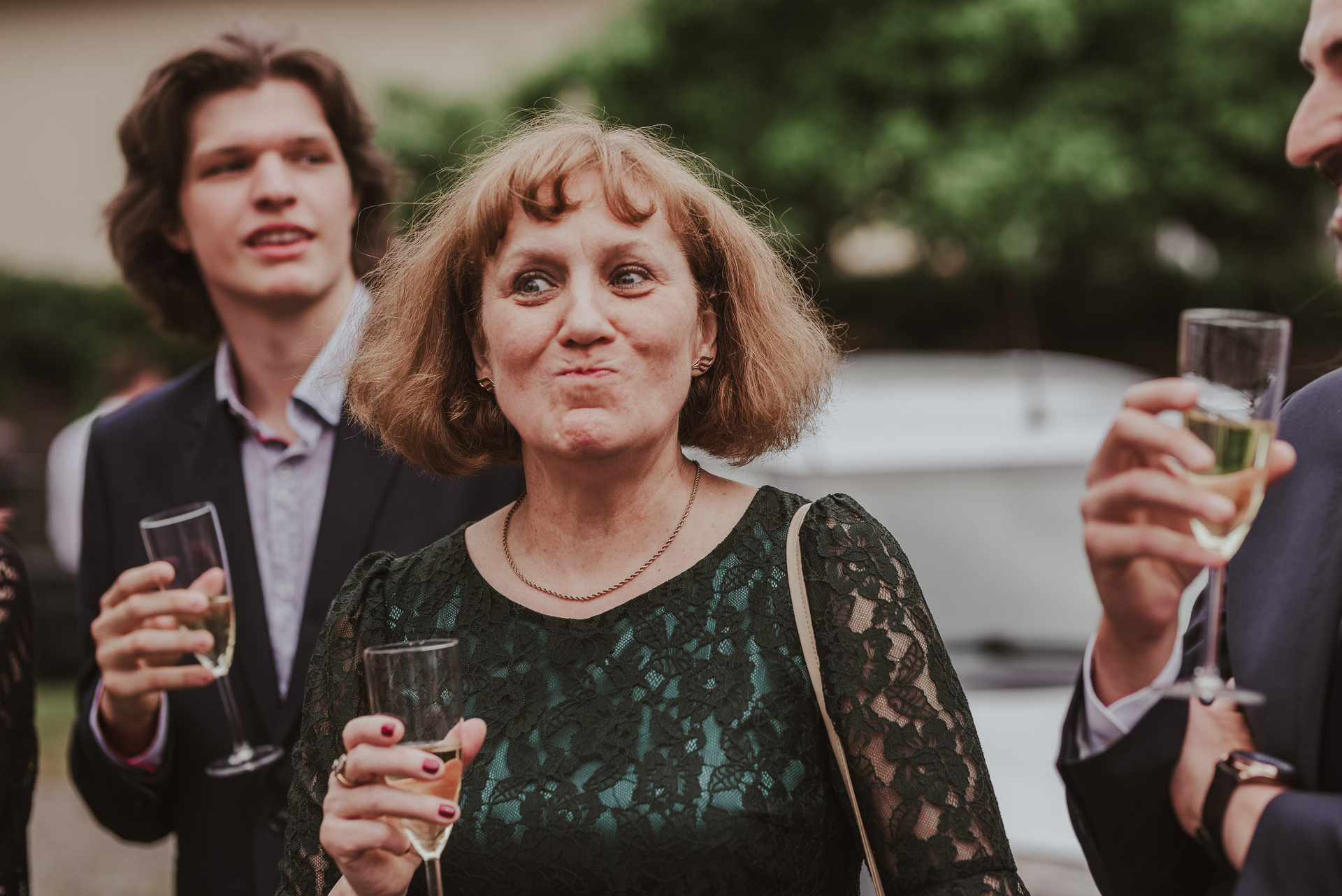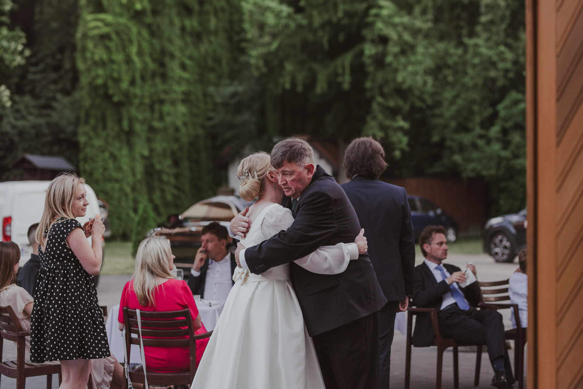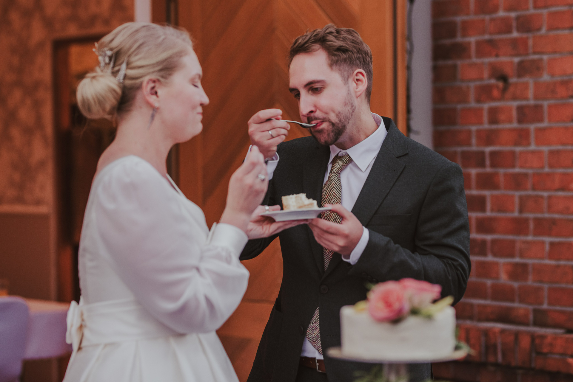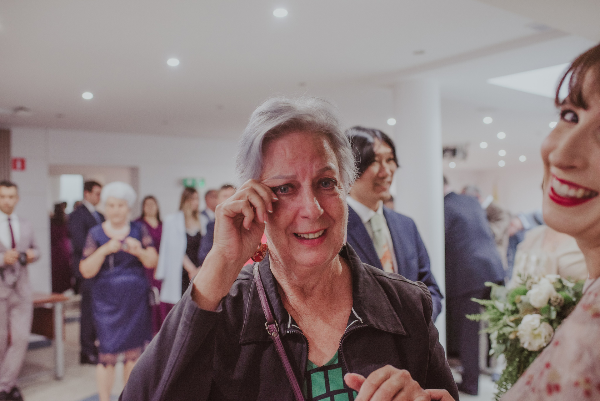 To była krótka uroczystość, 2023 rok opiewał głównie w takie :) Młodych poznałam tuż przed urzędem, Suknia Zuzy była zachwycająca i uwaga! Miała kieszenie :) Tom również przystojnie się prezentował, zakochałam się w kolorze jego garnituru - jednak kwiaty w butonierce powodowały u niego alergię, chociaż ja wolałam myśleć, że jest taki wzruszony :) Wejściu młodym do urzędu towarzyszyła ciekawska sójka, która czekała i obserwowała nas na ławce. Sama urzędniczka przeprowadziła uroczystość w piękny i zabawny sposób, napisała nawet wiersz z okazji śluby tych dwojga:)