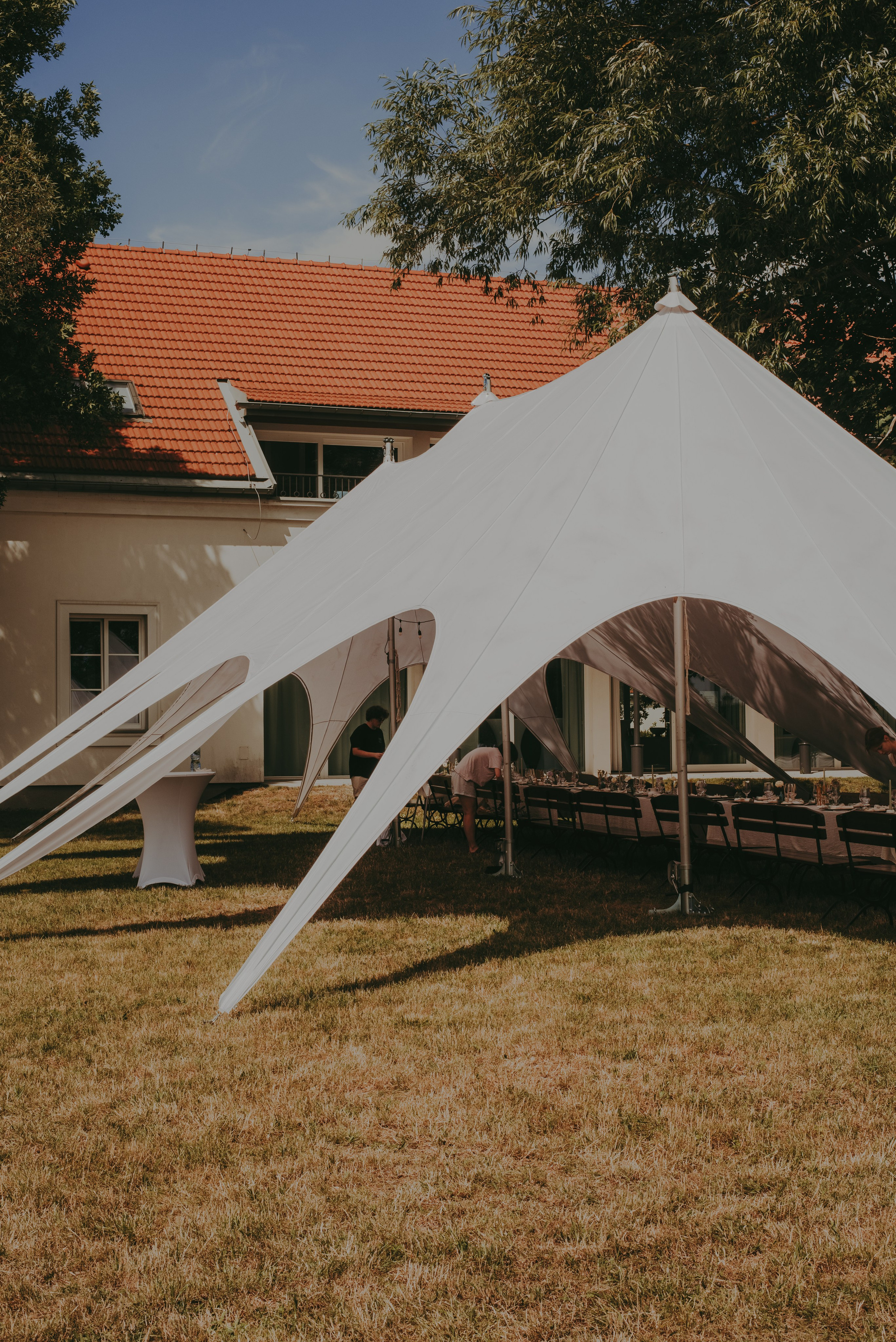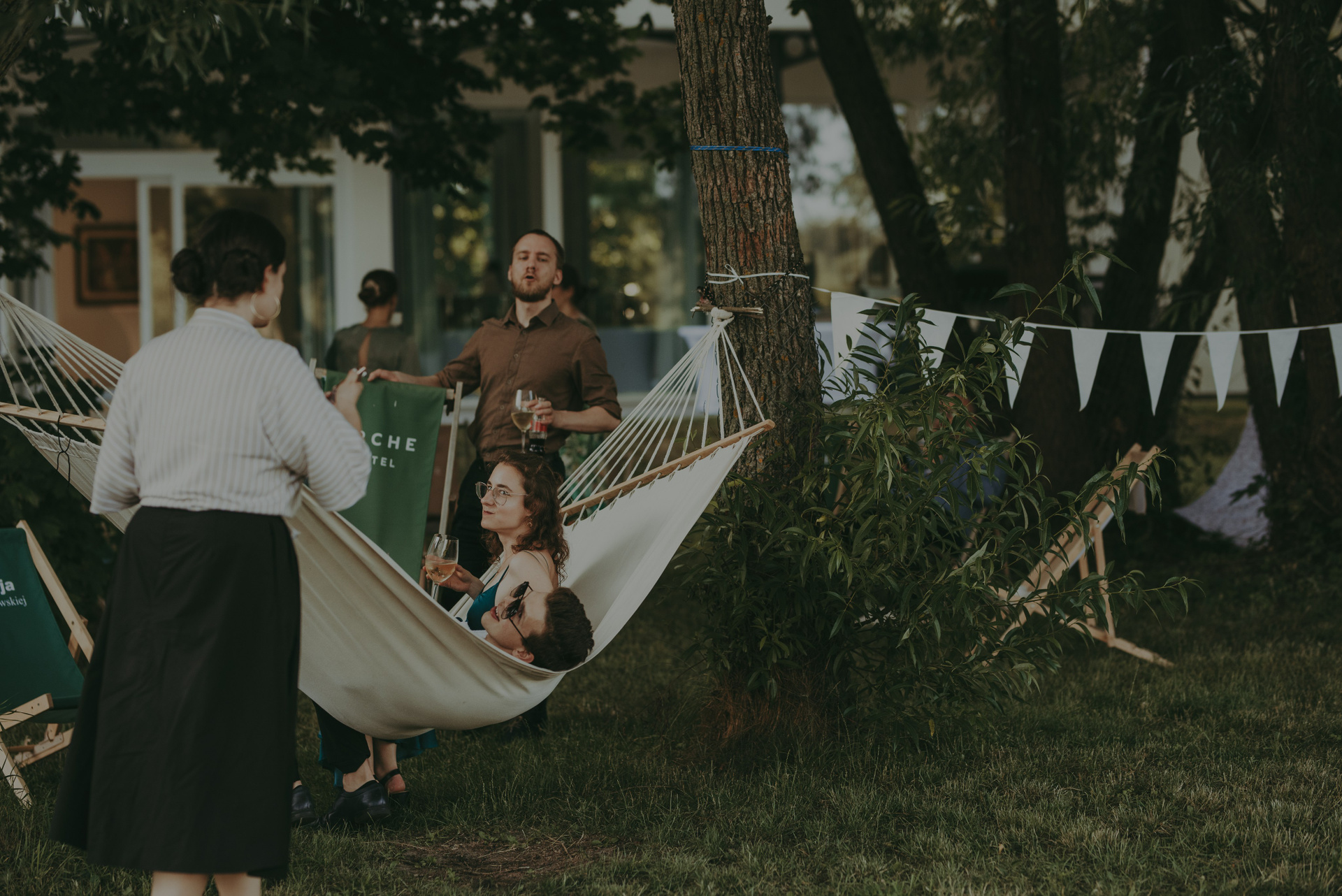 Kiedy przyjechałam na miejsce, Mania już szykowała się wraz ze swoimi przyjaciółkami, a Andrzej krzątał się, dopinając ostatnie szczegóły przyjęcia. Mimo letniego upału, domki zapewniane przez Folwark Łochów oferowały komfortowe warunki – klimatyzacja działała bez zarzutu, co znacznie ułatwiało przygotowania.